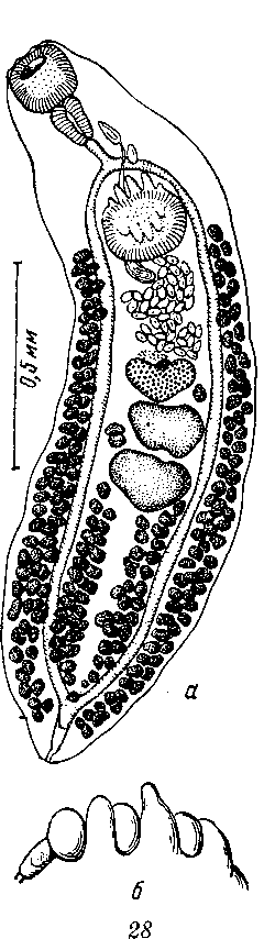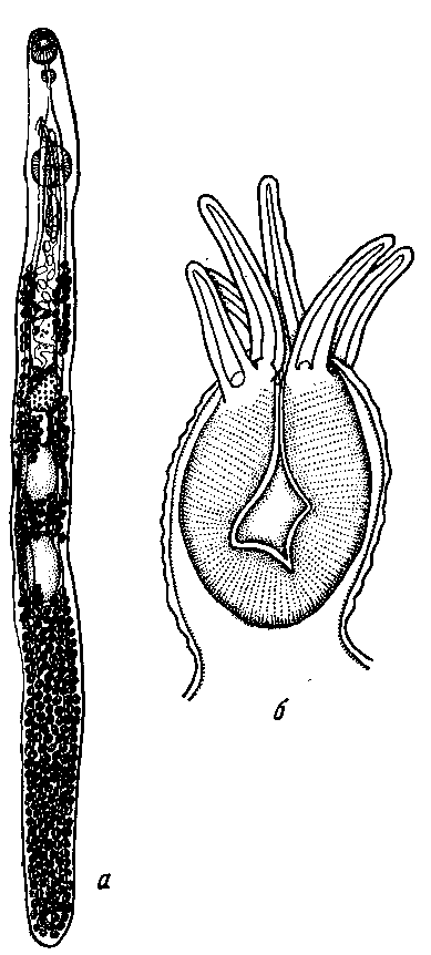 a — марита; б — сосочки на брюшной присоске