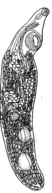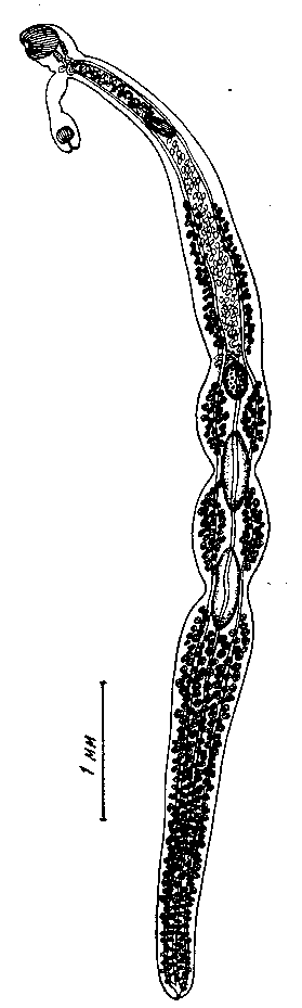 Описание вида (по Ямагути, 1942). Тело продолговатое, с более или менее заостренными концами, при сокращении — утолщенное. Длина тела 1,5—2,9 мм при ширине 0,45—0,60 мм приблизительно в области середины; кутикула невооруженная. Ротовая присоска шаровидная, терминальная, направлена в вентральную сторону и достигает 0,10—0,15 X 0,12—0,16 мм. Имеется префаринкс; фаринкс 0,10—0,11 X 0,072 —0,09 мм, расширен в задней половине. Пищевод 0,070—0,165 мм длины, раздваивается приблизительно на середине расстояния между фаринксом и брюшной присоской. Простые кишечные стволы тянутся по бокам тела, соединяются у заднего конца и открываются наружу терминально, вместе с экскреторным пузырем, образуя уропрокт. Брюшная присоска выпуклая, но не стебельчатая, без отростков, достигает 0,24—0,25 мм в диаметре; она расположена таким образом, что ее центр лежит немного позади середины передней трети длины тела.