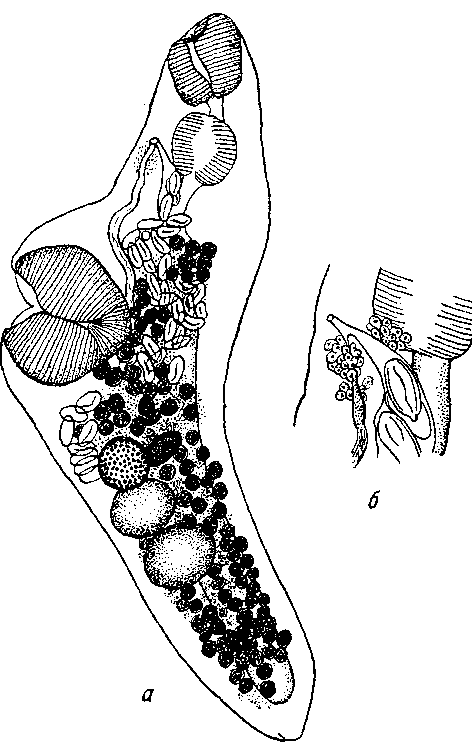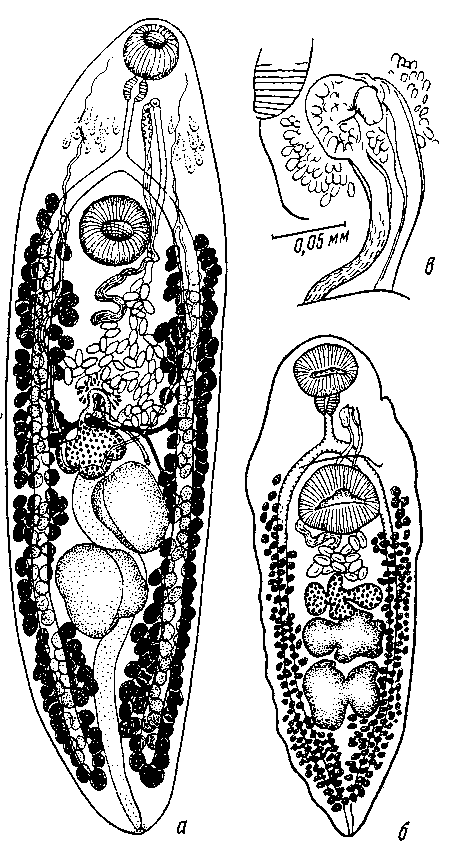 а — марита; 6 — брюшная присоска