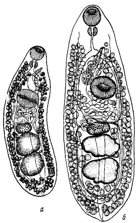 Экскреторный пузырь трубковидный, узкий, с дорзальным отверстием, достигает заднего конца яичника, где от него отходят два собирающих сосуда.