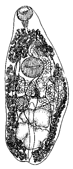 Plagioporus (Plagioporus) serotinus Stafford, 1904 (по Миллеру, 1940)