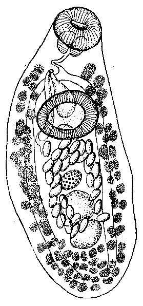 Plagioporus (Plagioporus) lobatus (Yamaguti, 1934) (по Ямагути, 1951)
