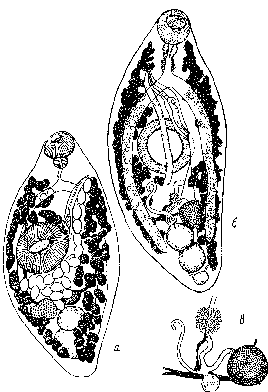 а - марита (по Мюллеру, 1934); б— марита (по Добровольному, 1939); в - комплекс женских половых органов (по Добровольному. 1939)