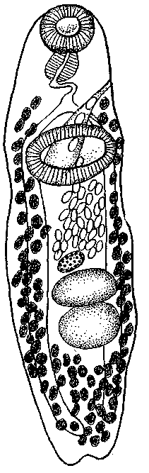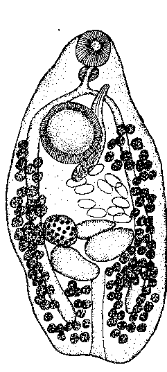 Plagioporus (Plagioporus) sp. Schulman et Schulman-Albowa, 1953 (по Шульману и Шульман-Альбовой, 1953)