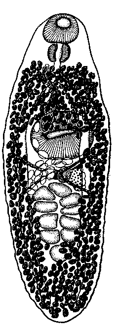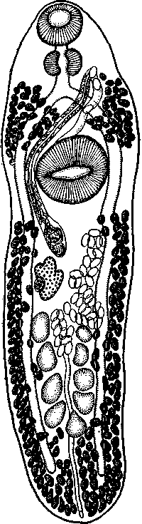 Три экземпляра, добытые из тонких кишок Sphaeroides spadiceus, достигали следующих размеров: тело 1,18—1,55 X 0,35—0,41 мм; ротовая присоска 0,100—0,125 X 0,125—0,150 мм; фаринкс 0,050—0,075 X 0,095— 0,108 мм; брюшная присоска 0,036—0,120 X 0,054—0,120 мм; половая бурса 0,44—0,56 X 0,036—0,063 мм. Циррус тонкий, в выдвинутом состоянии достигает 0,23—0,20 мм; яичник четырехлопастной, 0,150—0,165 X 0,084—0,125 мм. Семяприемник 0,042—0,054 мм ширины. Яйца 0,054— 0,063 х 0,033—0,036 мм.