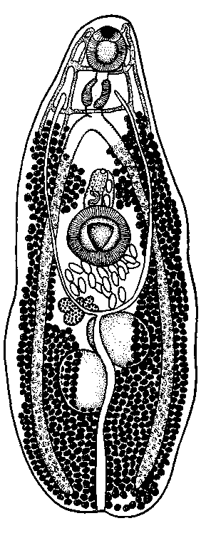 Овальные, не очень многочисленные яйца 0,042—0,045 мм, явно усечены на том конце, где крышечка, и имеют небольшой папиллообразный выступ на противоположном конце. Следует заметить, что на оболочке яйца есть заметный продольный гребешок с почти вертикальными сторонами. Хорошо дифференцированный метратерм снабжен своеобразным мускульным утолщением в своем дистальном конце против мужского протока. Желточные фолликулы начинаются от уровня середины пищевода, проходят вдоль кишечных стволов и простираются на короткое расстояние кзади от их концов, где они заходят в медианную область, пересекая дорзальную стенку кишечных ветвей.