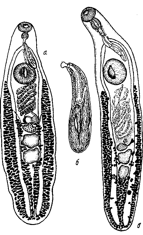 а - марита: б — половая бурса (по Вулкоку, 1935); в — марита (по Кроукрофту, 1947)