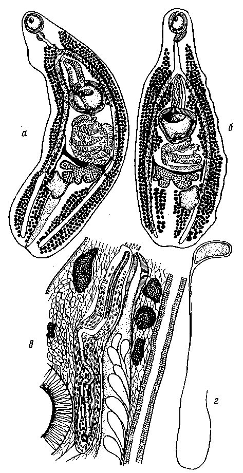 а, б — мариты; в — концевой участок полового аппарата; г — яйцо с филаментом