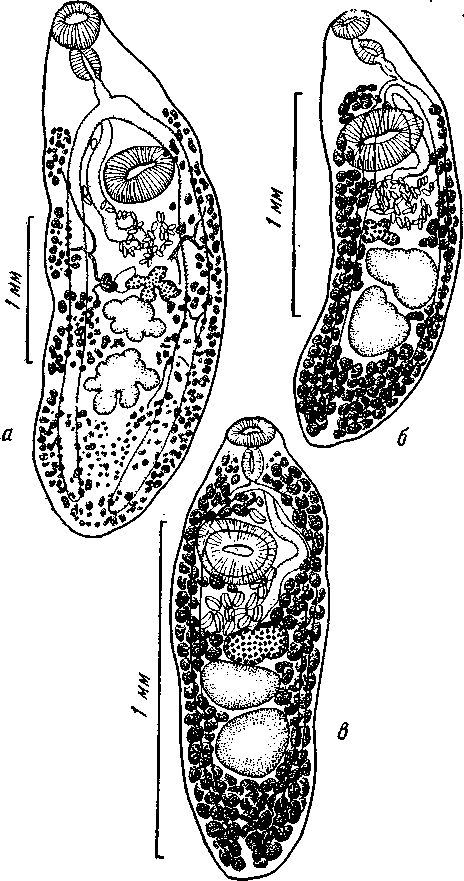 a — из Myoxocephalus scorpius; б — из Pleuronectes flesus; в — из Gasterosteus aculeatus