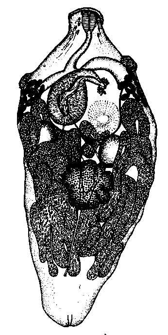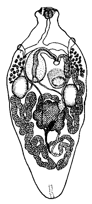 Яичник лопастной, лежит медианно, позади уровня расположения семенников. Лауреров канал направлен кзади и оканчивается дорзально недалеко от заднего конца тела. Петли матки не достигают заднего конца тела, сосредоточиваясь в основном в области его латеральных краев. Желточники располагаются по бокам тела впереди от семенников. Вагинальные отверстия лежат на уровне перехода пищевода в кишечные стволы. Паразиты жабер эласмобранхиевых рыб.