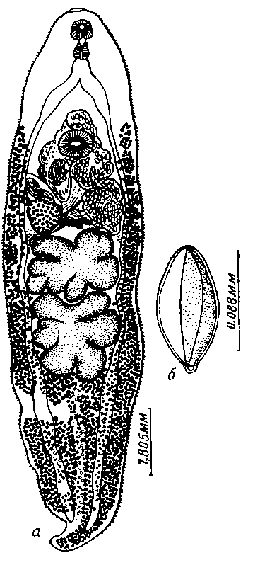 Описание вида (по Браво, 1953). Тело продолговатое, передний конец закругленный, а задний в виде загнутого крючка; латеральные стенки тела позади семенников несколько волнистые. Общая длина тела достигает 4,497—8,225 мм; ширина на уровне переднего семенника 1,470 — 1,872 мм. Кутикула тонкая, почти до самого заднего конца покрыта мелкими чешуйчатыми образованиями, которых больше всего в зоне впереди брюшной присоски. Брюшная присоска находится на расстоянии 1,102 — 1,645 мм от переднего конца тела, имеет почти шаровидную форму и достигает 0,323—0,402 мм длины и 0,323—0,420 мм ширины; стенки присоски мышечные. Ротовая присоска субтерминальная, шаровидная, достигает в длину 0,192—0,315 мм при ширине 0,175—0,315 мм. Соотношение между длиной присосок 1 : 1,3 — 1: 1,6 и шириной 1 : 1—1 : 1,6.