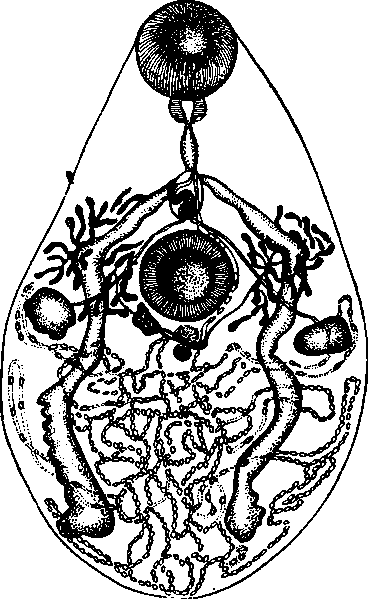 Петли матки располагаются не только в промежутке между кишечными стволами, но, пересекая кишечник, занимают экстрацекальное пространство.