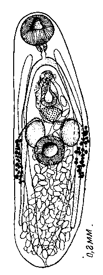Описание вида (по Ямагути, 1952). Тело сплющенное, почти цилиндрическое, с тупыми концами, достигает 0,75—1,32 мм длины при максимальной ширине 0,22—0,38 мм в средней части тела. Кутикула тонкая, невооруженная (?). Ротовая присоска почти терминальная, достигает 0,11—0,15x0,105 — 0,156 мм. Префаринкс отсутствует. Фаринкс достигает 0,048—0,060 х0,045 — 0,070 мм; его передний конец разделен на три лопасти. Пищевод достигает 0,030—0,045 мм длины при ширине 0,020—0,030 мм. Он бифурцирует позади середины передней трети длины тела. Кишечные стволы узкие, немного не доходят до заднего конца тела (у типичного экземпляра не доходят на 0,2 мм). Брюшная присоска слабо мышечная, достигает 0,08—0,16 мм в диаметре, расположена непосредственно позади середины тела.