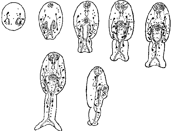 Развитие экскреторной системы у церкария