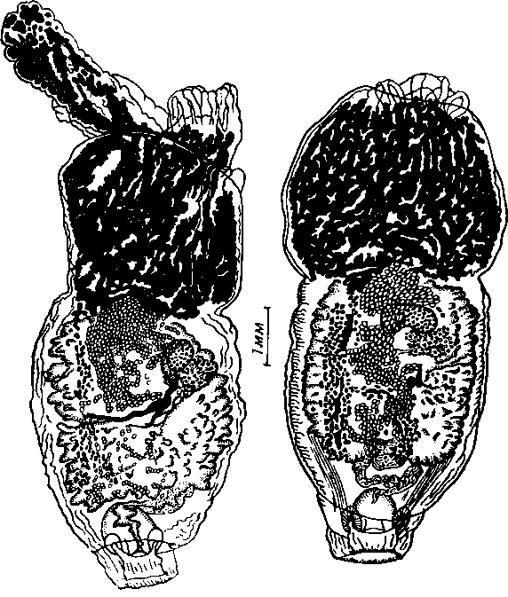 Описание вида (по Биссеру, 1956). Общая длина тела достигает 6—8,6 мм, не считая вентральных лопастей органа Брандеса, способных выступать над краем переднего сегмента на расстояние до 3 мм. Их длина превосходит длину самого сегмента. Длина переднего сегмента 2,8—3,86 мм, максимальная ширина 2,4—3,04 мм. Размер заднего сегмента 3,2—4,75x2,9—3,58 мм. Соотношение длины сегментов равно 1,12—1,25. Межсегментарное сужение заметно.