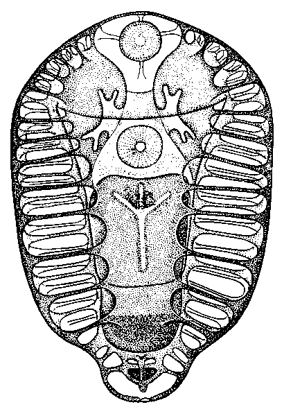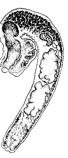 Apharyngostrigea pipientis (Faust, 1918) (по Дюбуа и Раушу, 1950)