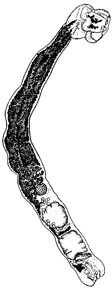Задний сегмент мешковидный, изогнутый. Область полового атриума может отделяться от остальной части тела заметным поперечным сужением. Половое отверстие терминальное. Половой атриум может быть редуцированным пли сильно развитым.
