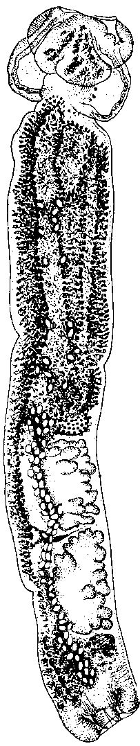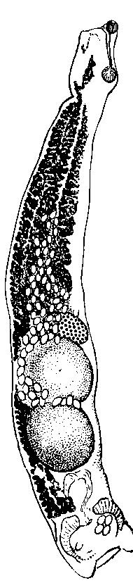 Иногда эти вздутия ориентированы косо или перпендикулярно к продольной оси переднего сегмента, принимая вид широкого выпуклого обруча или воротника. Присоски сближены и развиты относительно слабо. Лопасти органа Брандеса развиты. Основание дорзальной лопасти состоит из двух мощных вздутий, в которых сосредоточены желточные фолликулы. Эти вздутия и определяют своеобразную форму переднего сегмента.
