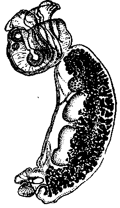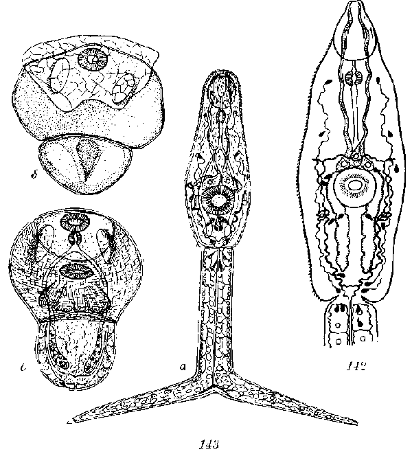 Рис. 143. Cotylurus cornutus (Rud., 1808) (по Матиасу, 1925)