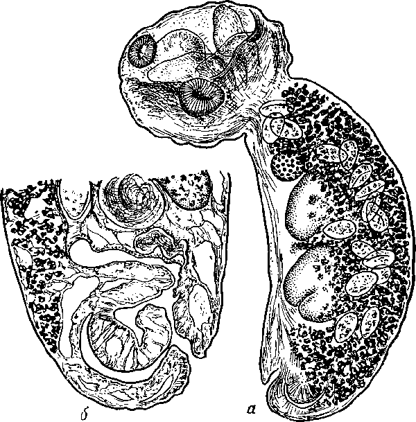 Присоски хорошо развиты. Ротовая присоска не выступающая, расположена на крае головной чаши. Ее размеры 0,130x0,105 мм. Брюшная присоска крупнее ротовой. Ее продольный диаметр — 0,18 мм, поперечный 0,16 мм. Фаринкс маленький, овальный, размером 0,07x0,04 мм. Желточники хорошо развиты. Их фолликулы от медиальной вентральной полосы отходят латерально, прикрывая до середины половые железы. Задняя граница желточного поля достигает основания полового атриума, не спускаясь в его стенки. Яичник эллипсоидный, располагается на расстоянии 1/5 длины заднего сегмента от межсегментарной границы. Его продольный диаметр 0,153 мм, поперечный 0,140 мм. Семенники округлые, сердцевидные. Их дорзальная сторона выпуклая. По вентральной стороне проходит впадина, расположенная по медианной линии. Диаметр семенников 0,27—0,38 мм. Яйца очень крупные. Их длина 0,12— 0,137 мм, ширина 0,068—0,084 мм.