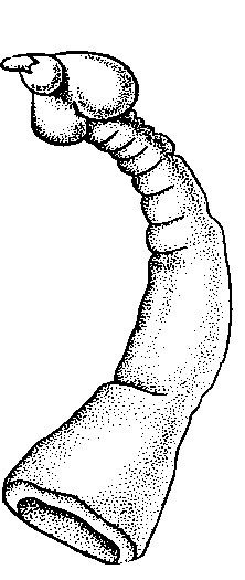Описание вида (по Дюбуа, 1938). Общая длина тела достигает 25 мм, встречаются экземпляры размером в 5,5—12 мм. Передний сегмент маленький или средней величины, сердцевидной или треугольной формы, благодаря наличию двух развитых латеральных вздутий у основания сегмента. Длина сегмента 1,5—2 мм, у мелких экземпляров 1,0—1,86 мм. Граница между сегментами четкая. Задний сегмент булавовидный, изогнутый, с резким расширением во второй половине или последней трети, внутри которого заключен очень объемистый ампулообразный половой атриум.
