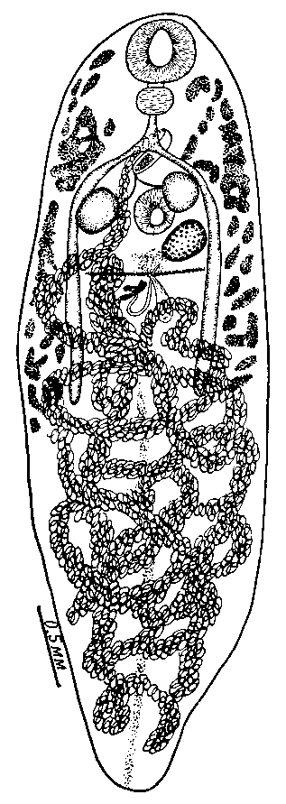 Mesocoelium americanum Harwood, 1932 (по Харвуду, 1932)