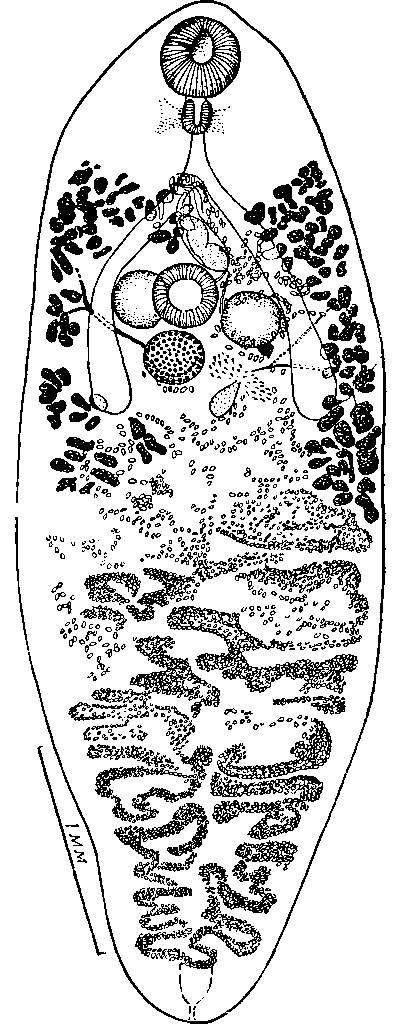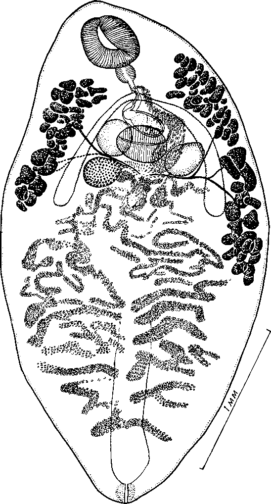 Mesocoelium brachyenteron Dollfus, 1954 (по Дольфю, 1954)