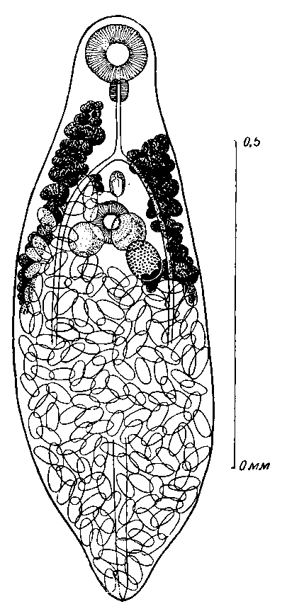 Mesocoelium carli Andre, 1915 (по Дольфю, 1950)