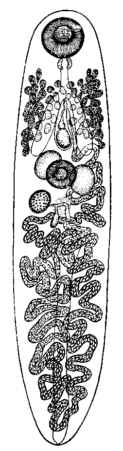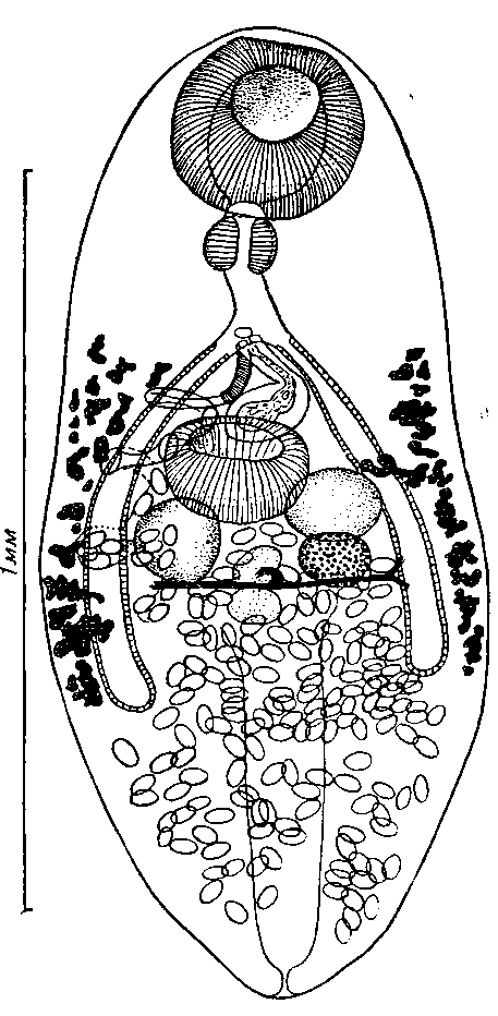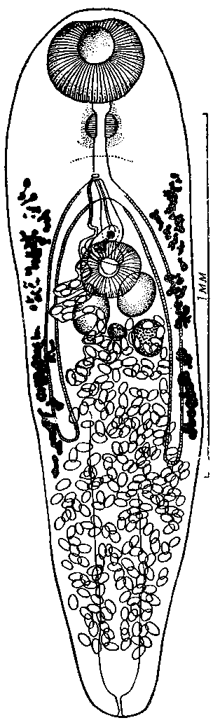 Mesocoelium elongatum Goto et Ozaki, 1929 (по Ямагути, 1936)