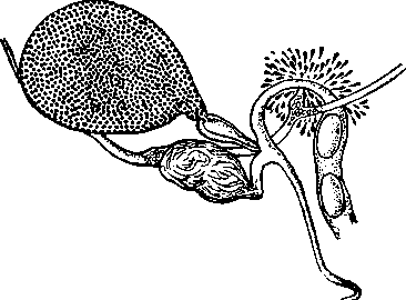 По отношению к кишечнику и яичнику передний семенник занимает более дорзальное положение. Правый семенник достигает 0,095 X 0,130 мм, левый 0,0825 X 0,115 — 0,130 X 0,1125 мм.