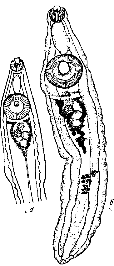 Ротовое отверстие снабжено дорзальным выростом—губой. Фаринкса нет. Кишечная бифуркация имеет поперечное расположение, примыкая непосредственно к заднему краю ротовой присоски. Кишечные стволы вначале направляются слегка вперед, а затем назад, достигая заднего конца тела, где они соединяются с экскреторным пузырем. В пространстве между обеими присосками лежит половая бурса, занимающая медианное положение. Половое отверстие открывается непосредственно позади кишечной бифуркации.