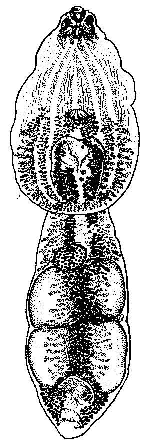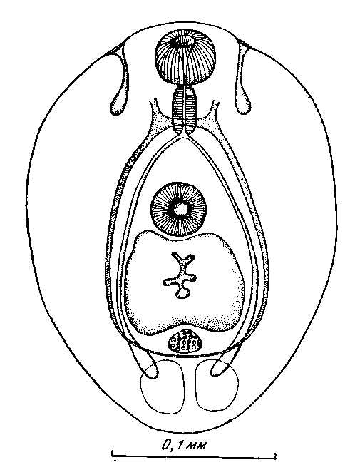 Diplostomum spathaceum (Rud., 1819) (по Дюбуа, 1938)