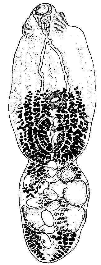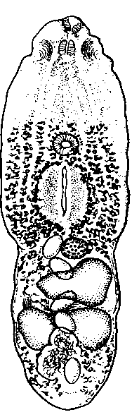 Diplostomum baeri bucculentum Dubois et Rausch. 1948 (по Дюбуа и Раушу, 1948)