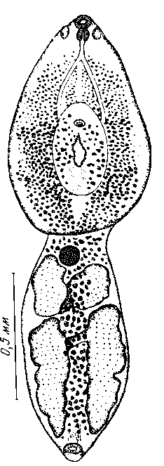 Diplostomum duboisi Anantaraman et Balasubramanian, 1953 (по Анантараману и Валасубраманиану, 1953)