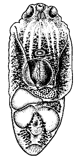 Diplostomum tregenna Nazmi, 1932 (по Дюбуа, 1938).