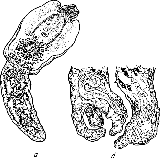 Локализация: кишечник. По Дубинину (1954), молодые экземпляры в задних отделах кишечника, зрелые — в переднем.