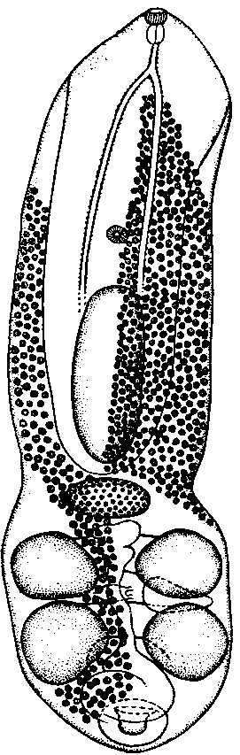 Neodiplostomum (С.) spathula (Creplin, 1829) (по Дубинину, 1952)