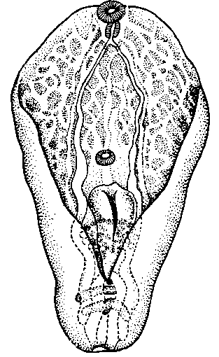 Neodiplostomum (С.) perlatum (Ciurea, 1911) (по Дюбуа, 1938)