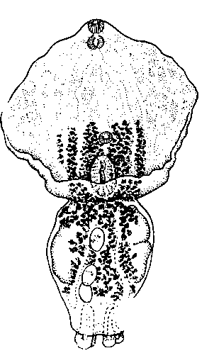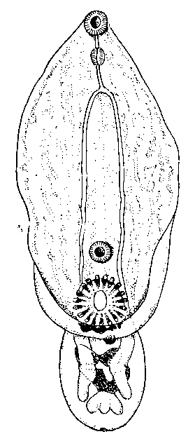 Poslhodiplostomum cuticola (Nordmann, 1832) Dubois, 1936 (по Чиуреа, 1930)
