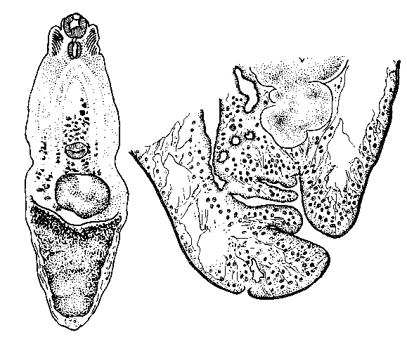 Описание вида (по Лутцу, 1928). Трематоды развиваются из цист с метацеркариями, обнаруженных у рыб. Длина тела 1,5—2,2 мм. Тело эллиптическое более или менее удлиненное. Передний сегмент тела слабо отделен от заднего, который заканчивается хорошо заметным субдор-зальным половым атриумом. Ротовая присоска слабо выступающая, 0,1 мм в диаметре. Псевдоприсоски хорошо заметны. Желточники занимают большую часть переднего сегмента. Зрелые яйца 0,1 мм длины.