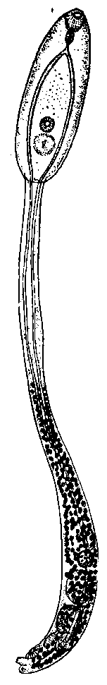 Описание вида (по Ямагути, 1934, 1939 и Дюбуа, 1938). Тело четко разделено на сегменты. Передний сегмент ложковидной формы овальный. От его дорзальной поверхности отходит булавовидный задний сегмент, в 2,5—3,25 раза превышающий длину переднего.