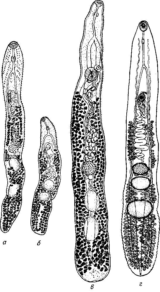 а и б — по Линтону, 1940; в — по Кабаллеро, Браво-Холлнс и Грокотту, 1955; г — по Ямагути, 1938