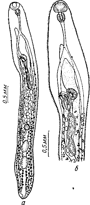 a — марита дорзально; б — передняя часть тела мариты
