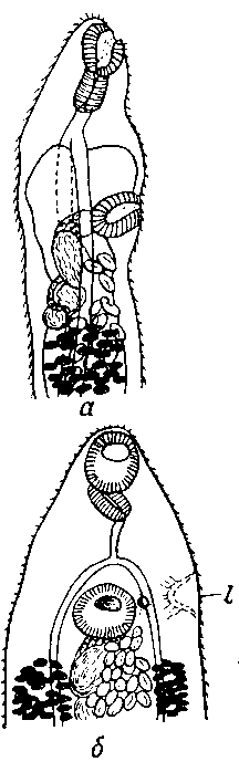 а - передний конец латерально; б — передний конец вентрально; в — латеральный присосковидный орган