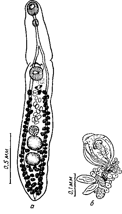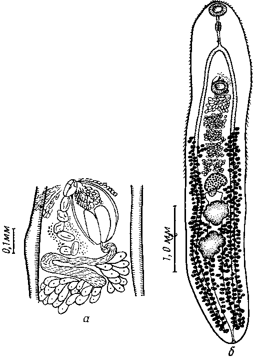 а — терминальный участок полового аппарата; б — общий вид мариты
