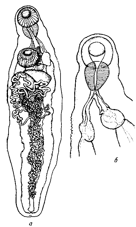 Трематоды с длинной «шеей» и расширенным собственно телом.