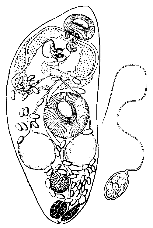 У обнаруженных трематод настолько развита половая система, что гельминт заполнен светло-коричневыми яйцами. Упомянутые авторы считают, что эти трематоды представляют собой четвертую стадию в онтогенезе данного вида.