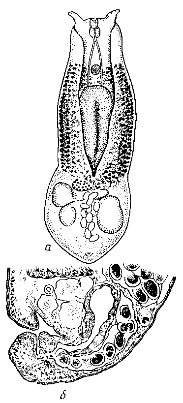 a — общий вид мариты; б — сагиттальный срез заднего конца тела