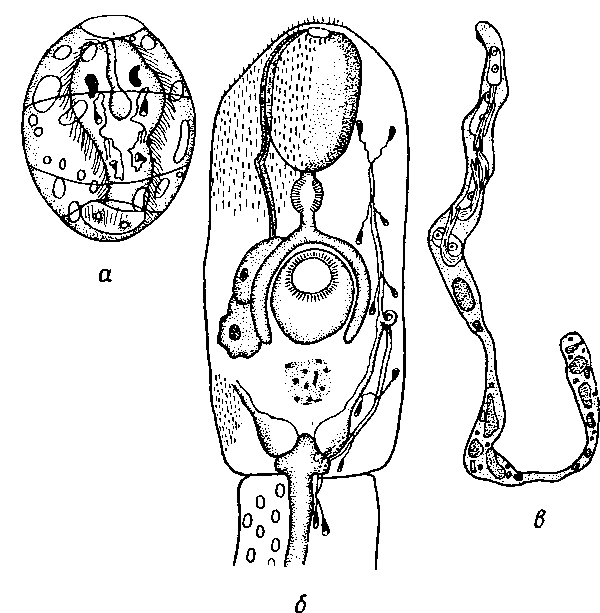 a — зрелое яйцо; б — церкарий; в — спороциста