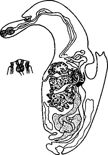 Alaria pseudoclalhrata (Krause, 1914) (по Дюбуа, 1938)